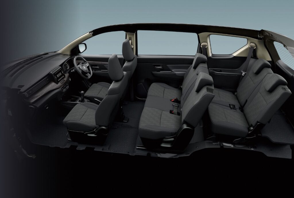 Inside, the Rumion offers a roomy and adaptable cabin, perfect for families. The well-designed interior features numerous storage compartments and can be easily reconfigured to accommodate various needs. The second and third rows of seats can be folded flat to create ample space for larger items, making it easy to carry everything from groceries to bicycles. The fabric seats and wood-like interior accents provide a comfortable and welcoming environment for all passengers.