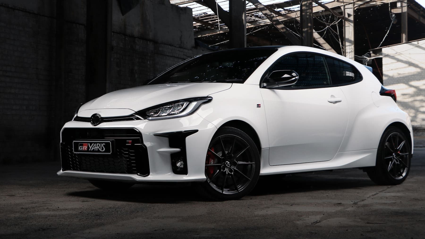 The GR Yaris boasts a bold and aggressive exterior, reflecting its rally heritage. The compact and aerodynamic design features a wide stance, muscular wheel arches, and distinctive GR badging. Its lightweight construction includes aluminium doors, a carbon fibre roof, and a sporty rear spoiler, all contributing to enhanced performance and a dynamic presence on the road.